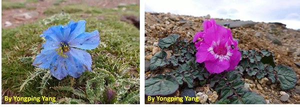 开花少但花大的多刺绿绒蒿(左)和藏波罗花(右)(图片来源:作者拍摄) 当然,植物发出的这些广告信号并非是“空手套白狼”,植物同样为昆虫准备了丰厚的食物报酬——花蜜或者花粉,昆虫在获得这些报酬的同时也为植物完成传粉。 值得注意的是,尽管熊蜂具有适应高原环境的能力,但整体来看数量仍然不多,因此一棵植物上并不是所有的花都会结种子,但植物仍然每年都会大量开花,这种类似“守株待兔”的现象一方面是为了吸引昆虫而发出的广告信号,另一方面也说明植物通过昆虫协助授粉产生种子对于植物本身具有非常重要的意义。 开花多但花较小的垫状点地梅(左)和藏玄参(右)(图片来源:作者拍摄) 结语 整体来看,植物本身“低调”的生长是对羌塘高原恶劣自然环境的适应,而“高调”的开花则是对羌塘高原传粉昆虫稀少的适应,因此生长在这里的植物都有一套独特的适应本地区自然环境的方法。 羌塘高原的植物虽然物种相对匮乏,但却保留了大量特殊的基因资源,这些基因资源将为我们解析高山植物的适应性和极端环境中的新品种选育提供海量的遗传信息。正如之前指出,这一地区的生态环境非常脆弱,在考察和开发利用的同时需要加大对生态系统的保护力度。 |