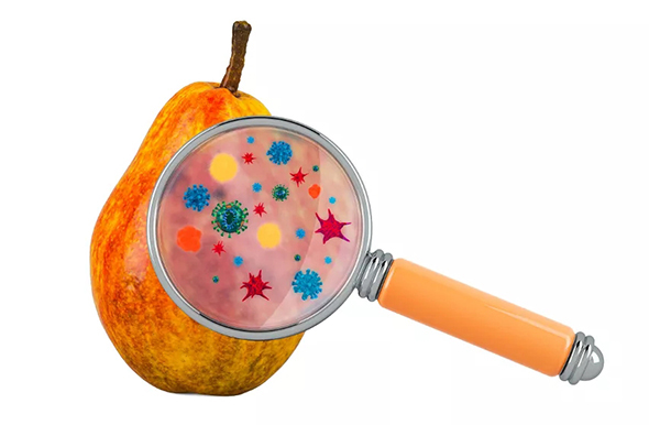 (图片来源:Veer图库) 水果经过人类几万年的“选择”,尽管看起来都是安全可口的,但它们都有一个致命的缺陷:在人类喜爱它们糖分丰富、香甜多汁的同时,微生物们也喜欢。像我们常吃的苹果果实,据统计容易感染多达81种的病原微生物,真是“皎皎者易污”啊。微生物和人类赛跑,在这些水果上抢占繁衍的资源,同时也代谢出致命的产物。 各种霉菌代谢出来的五花八门、性质各异的产物,如青霉分泌的青霉素,黄曲霉分泌的黄曲霉素;它们拼命寻找着水果的“防御漏洞”,一旦成功便大肆入侵。而我们往往珍惜那来之不易的水果,于是用刀小心翼翼地挖去腐烂的部分,继续食用,殊不知微生物们早已把自己的“触角”伸向了我们看不见的深处,把“毒素”留在了更深更远的地方。珍惜劳动成果的人啊,水果“有毒”,请在挖去腐烂的果肉的时候,挖得大些、挖得深点吧。 水果代餐:营养大厦的崩塌 而更大的风险,还来自于我们对水果的误用。