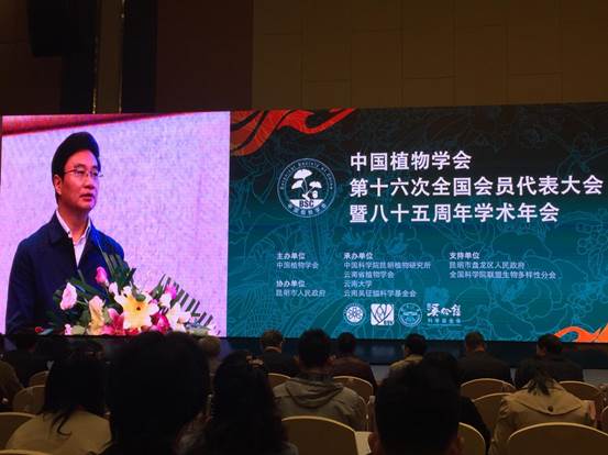 中国植物学会第十六次全国会员代表大会暨85周年学术年会,于2018年10月11日在昆明市云安国际会议中心隆重举行。 大会开幕式上,全国人大常委会副委员长、中国植物学会理事长武维华,云南省政府副省长董华,昆明市委副书记、市长王喜良,中科院昆明植物研究所所长、云南省植物学会理事长孙航等先后致辞,云南省人大常委会副主任纳杰,云南省政协副主席、科技厅厅长徐彬,云南省政府秘书长杨杰出席开幕式。