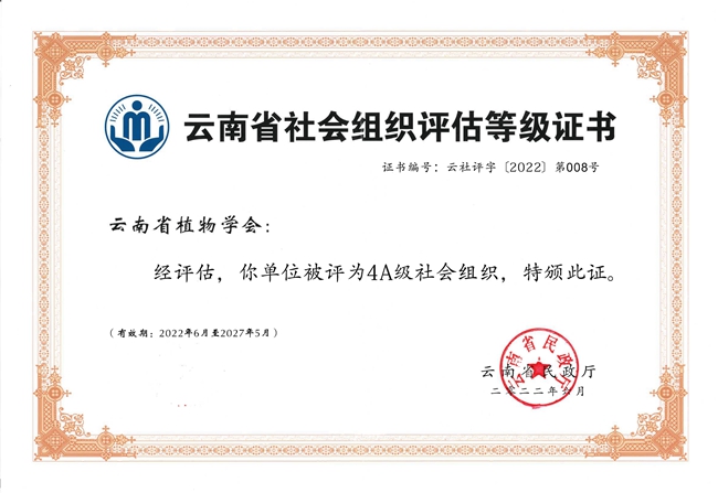 9月2日,云南省民政厅向云南省植物学会颁发“4A级社会组织”证书和牌匾,评估结果有效期为2022年6月至2027年5月。学会于2021年8月参加了云南省民政厅组织的2021年度全省性社会组织评估,9月24日评审专家组对学会进行了现场评估,孙航理事长与会并介绍了学会基本情况,朱卫东秘书长向评估专家组汇报近年来学会取得的工作成效。专家组对学会内部治理、工作绩效、社会责任、社会评价等多个方面进行全面考评,并对学会办公室的办公条件进行了实地考察。经云南省全省性社会组织评估委员会初审、现场考核和终审,学会获评4A级社会组织。本次评估结果,充分体现近年来学会在理事会领导下,在内部治理、业务发展和社会责任等方面取得的工作成效,有效树立了学会的良好形象,提高学会自身公信力,为下一步发展奠定了坚实基础。