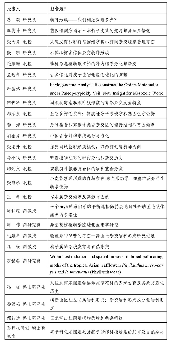 一、会议主题:物种生物学、自然杂交与网状进化、物种形成与适应性进化