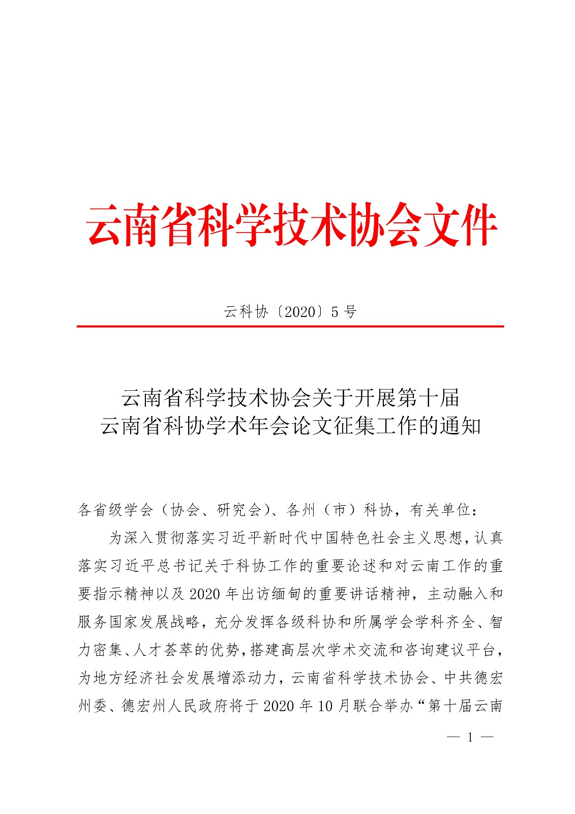 云南省科学技术协会关于开展第十届云南省科协学术年会论文征集工作的通知