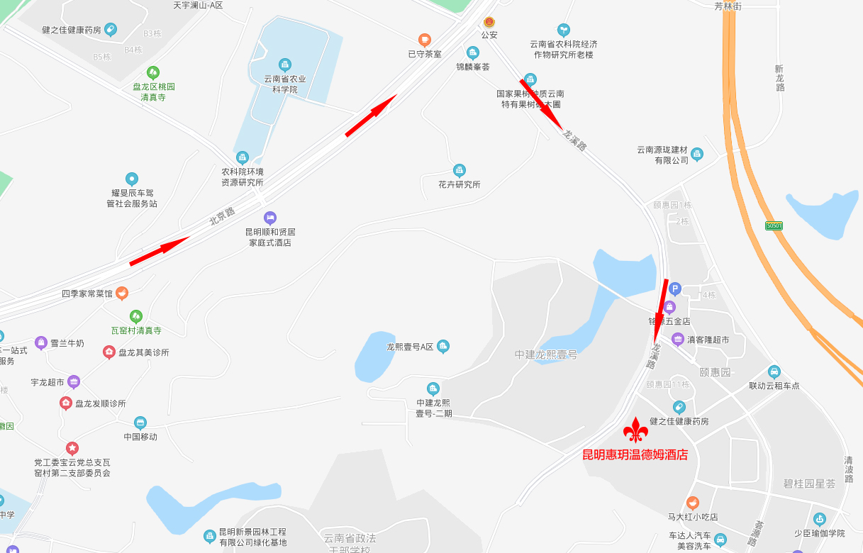 四、会议用餐:午餐12:00-13:30,晚餐18:00-19:30,酒店三楼自助餐厅(注:因条件所限,会议不提供清真饮食) 五、会议住宿:昆明惠玥温德姆酒店(会议协议价360元/晚),联系人:邓常玲 13888989794 六、交通指南 1. 会场交通:可乘坐Z65路公交车(司家营-颐惠园小区)下车步行100米左右抵达酒店。