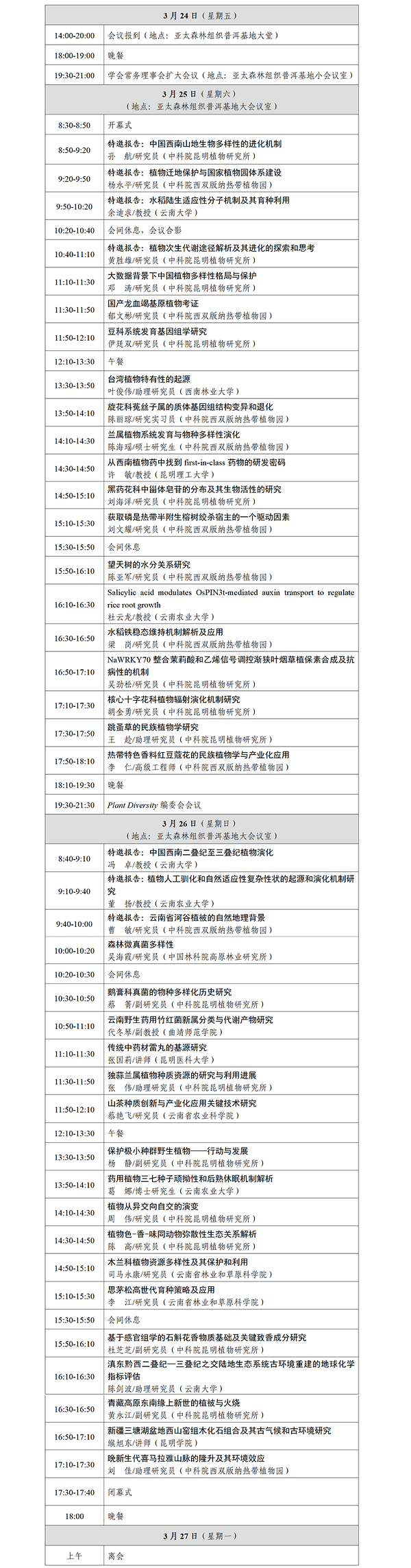 为促进学术交流,有效支撑我省乃至我国的植物科学前沿与交叉研究的发展,云南省植物学会定于2023年3月24日至26日在云南省普洱市召开“植物多样性与资源利用学术研讨会暨2022年学术年会”。现将会议有关事项通知如下: 一、会议主题:植物科学前沿与交叉