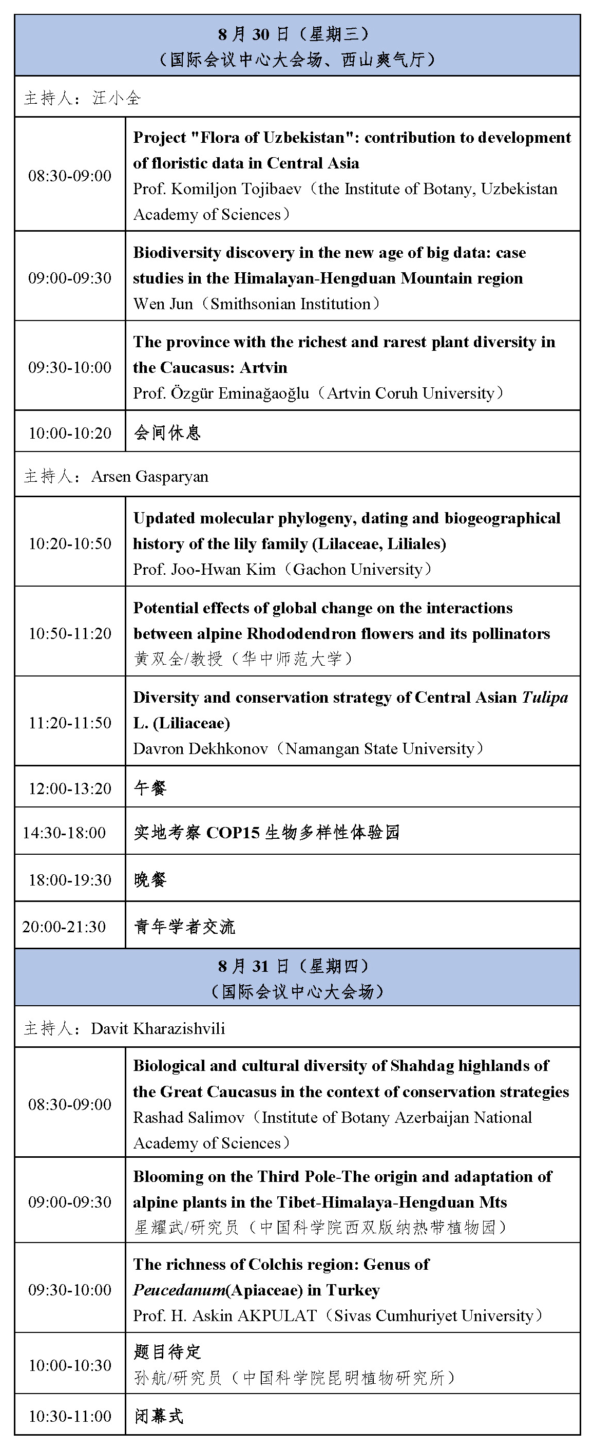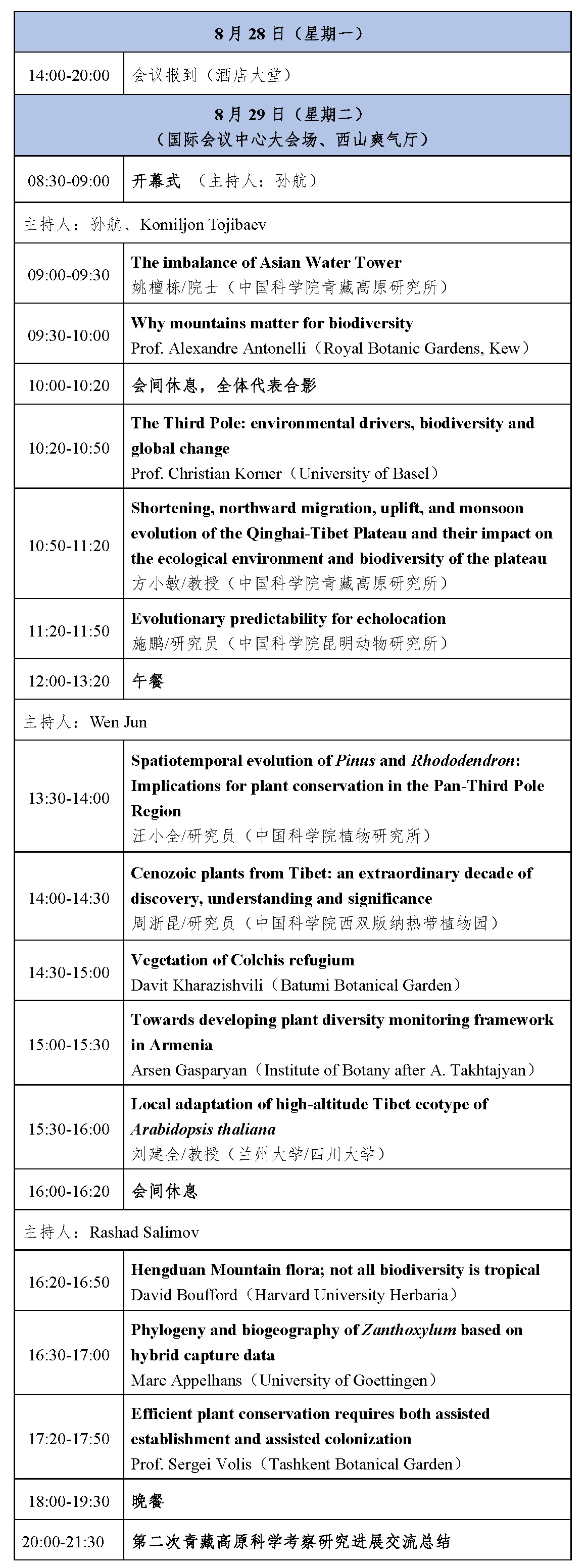 泛第三极地区,以青藏高原为核心,涵盖了东亚、南亚、中亚和中东欧等地区,面积约为2,000万平方公里,其中包括超过20个国家和地区的30多亿人口。泛第三极地区是全球气候变暖最强烈的区域和未来全球气候变化影响不确定性最大的地区。 为推动泛第三极地区植物多样性保护研究发展、促进本领域的国际间学术交流、研讨未来合作研究的方向,第二次青藏高原科学考察研究植物专题将于 2023 年 8 月 28 日至 31 日在昆明召开首届“泛第三极地区植物多样性保护研究国际前沿学术研讨会”。 本次会议旨在从区域甚至全球尺度上深入第三极植物多样性保护前沿科学研究,认识泛第三极地区的植物多样性保护问题,从而揭示泛第三极地区植物应对环境变化的规律,探讨未来泛第三极地区植物资源挖掘与可持续利用的绿色发展策略。 欢迎国内相关领域的专家、学者和学生踊跃参与。 一、会议主题 拥抱植物,追梦未来 二、会议时间与地点 会议时间:2023年8月28日至8月31日 (28日下午报到,31日下午离会) 会议地点:昆明滇池温泉花园国际大酒店 三、会议日程