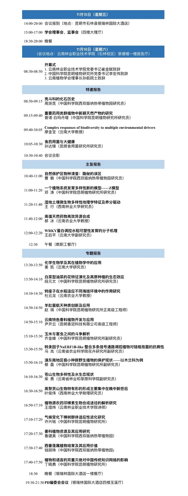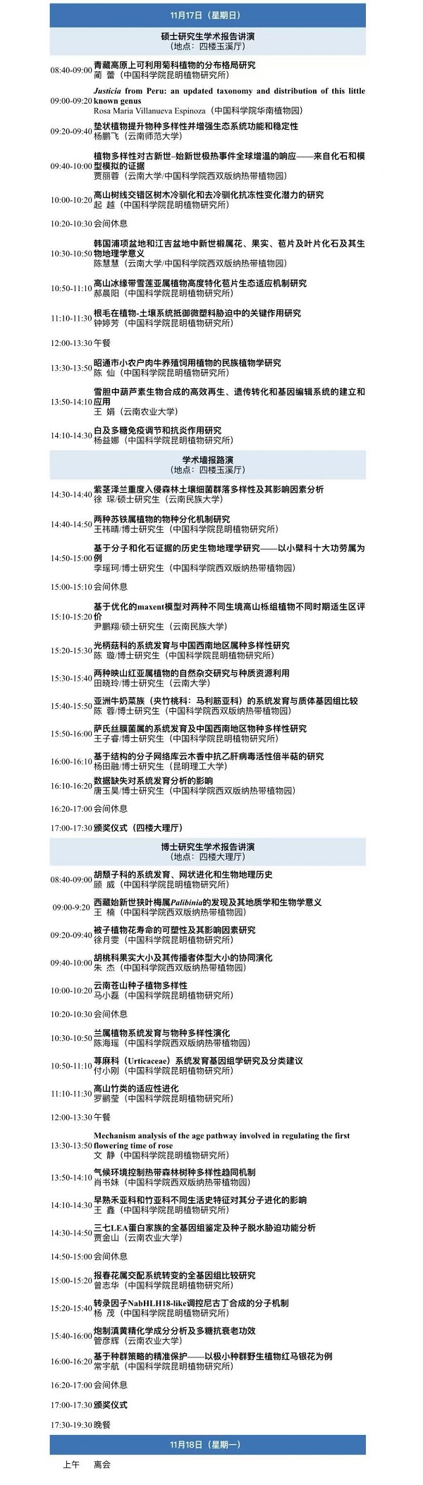 (二)第十届吴征镒生物多样性青年学术论坛会议日程(地点:石林银瑞林国际大酒店)