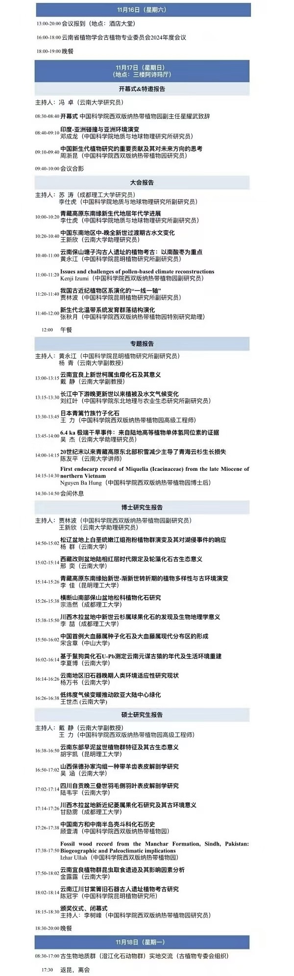 (三)第二届古植物学术研讨会会议日程(地点:石林银瑞林国际大酒店)