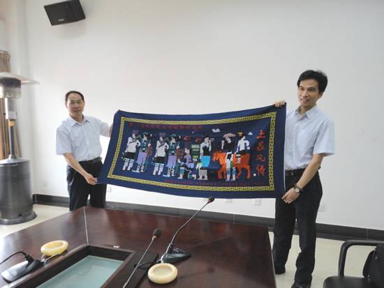 2011年3月,昆明植物所同湖北省农科院中药材研究所签署了共同开发武陵山药用植物资源的合作协议。此次湖北考察团的来访,目的是进一步拓展合作空间及内容。本着优势互补的原则,昆明植物所与湖北省农科院及其下辖的中药材研究所将在种植资源保存、植物园建设及旅游资源开发、武陵山药用资源植物化学的分析工作及天然药物的二次开发等方面加强合作。会后,湖北省考察团向中科院昆明植物所赠送了绣有“中科院昆明植物所”的特色土家族纯手工挂毯。