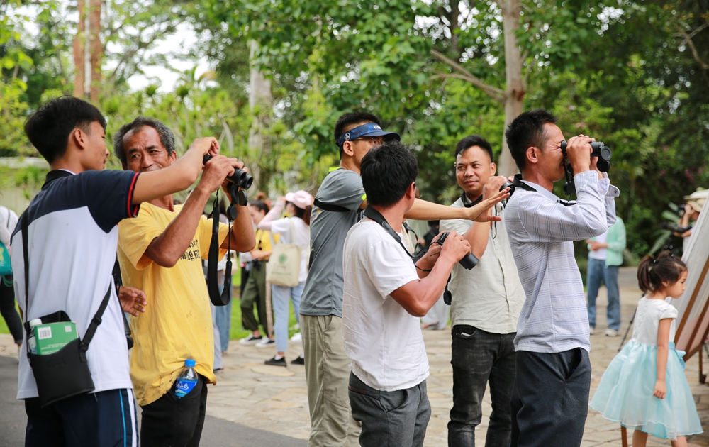 周边村民和当地学生在植物园内体验观鸟