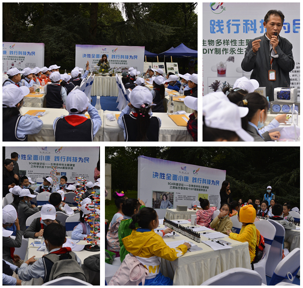 SCA科普讲坛 值得一提的是,此次科普活动现场还举行了由云南省植物学会、吴征镒科学基金会、昆明植物园、云南中科昆植生物科技有限公司联合推出的“探秘芳香密码”、“探秘科技之花”、“探秘植物熊猫兜兰”、“植物科普拓印”、“科学抗疫”等以生物多样性为主题的SCA科普讲坛,讲坛采用讲座结合DIY动手操作的方式,由科学家和科技带头人为公众现场解说和互动,向公众传播科学知识,传播科学家精神,加深科学普及。科普老师还带领现场同学参观昆明植物园,并讲解园中植物。活动现场热闹非凡,互动体验乐趣多多。
