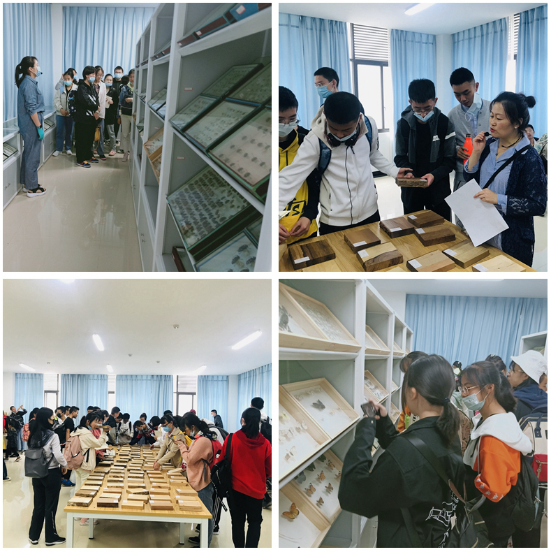 活动现场 9月20日,活动又迎来了昆明市实验中学初中部和高中部200多名学生,参加在云南省林业和草原科学院开展的SCA科普讲坛和参观木材标本馆及昆虫标本馆研学活动。研学活动分两个部分进行,以SCA科普讲坛“吴征镒先生的科学精神”和“认识自然”两个主题讲座,让孩子们了解科学家的成长故事和科学家为祖国做出的贡献,让孩子们从地质变迁到生物多样性,全方位探秘自然。在木材标本馆内同学们对木材的花纹、香味及用途特别感兴趣,认真聆听科普老师的讲解木材知识,并做自然笔记。在昆虫标本室馆了解到昆虫有成虫、卵、幼虫、蛹等不同生活史,保存方式以针插和浸泡为主,看到了多种多样的甲虫标本、蝴蝶标本、蛾类标本等,科普老师告诉孩子们蝴蝶与娥直接的区别,怎么区分它们两者之间的不同等知识。昆明实验中学的老师和学生均表示这次活动极有意义,亲身了解到科学家精神以及科学研究的内容,感动于科学家为科学献身的精神,着迷于自然科学研究的神奇,深感受益匪浅。