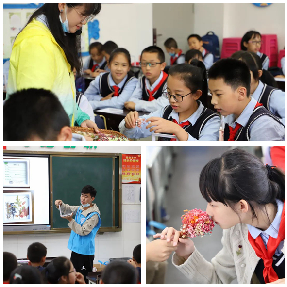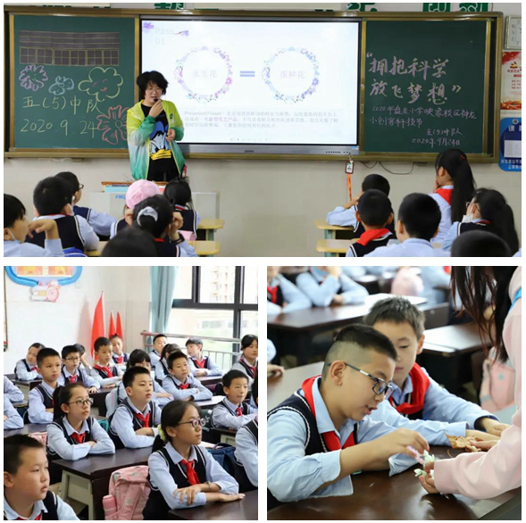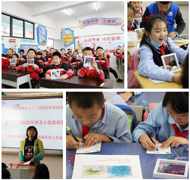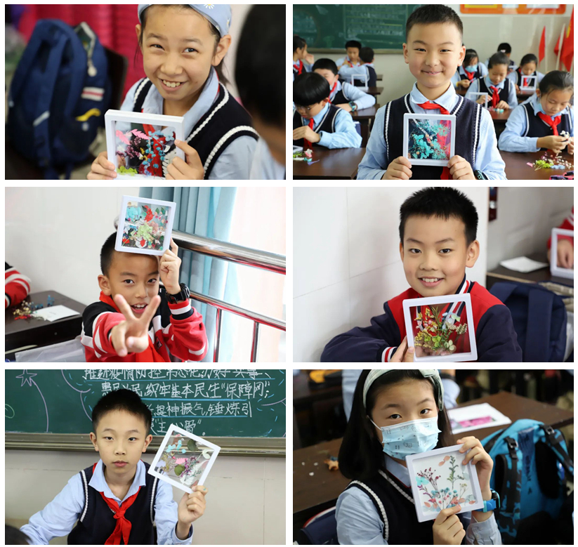 同学们纷纷举手向老师表达自己的感受和疑惑,最后由科普老师来讲解各自的不同之处。科普了吸附技术和浸泡技术。 没一会儿就到了同学们自己动手制作永生花标本框的时间,由我们的科普志愿者为同学们讲解标本框的正确使用方式,然后为同学们发放花材、卡片和标本框。