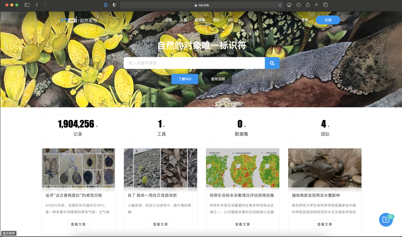 "如果每位研究者,在使用一个物种学名时都能够附上参考文献,那么分类学一定会是影响因子最高的学科之一”,圈子里时常可以听到这样的牢骚。在自然科学的发生发展过程中,对事物性质的区分与对事物变化规律的研究,一直是相辅相成、难分伯仲的。这一点不管是在不同层次的自然对象研究之中,还是在脱离了具体研究实体的纯粹数学领域均是如此。因此对于物种的分类,特别是那些有赖于主观经验的分类,当前的挑战主要还是来自于量化研究的困难。尤其是进行多维度、大规模数据的信息提取和分析一直是相关领域协力而为的目标。其中,如何解决计算机在系统内和系统间发现、识别、访问、重用生物多样性数据,则是在宏观层面上与这一目标最为相关的基础课题。Natural Object Identifier · 自然索引(以下简称 NOI)就是针对这一问题的一次尝试。