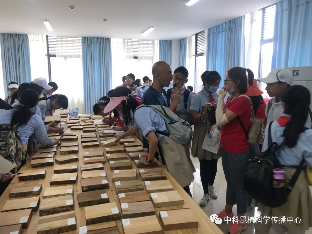 在木材馆内 同学们对木材的花纹、香味及用途特别感兴趣,认真聆听云南林科院冯弦研究员的讲解木材知识。“七宗最”吸引了大家的注意:世界上或中国最轻、最重、最高、最贵、最毒的木材,以及最古老的植物和最大的竹子标本,孩子们在观察木材标本馆时不断向老师询问,俨然一个个寻根问底的小学者。