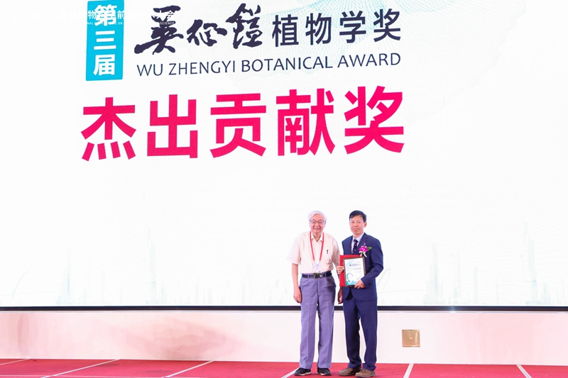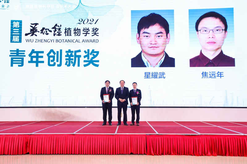 2022年7月19日,第三届吴征镒植物学奖颁奖仪式在南京举办的首届植物科学前沿学术大会开幕式上举行。中科院昆明植物研究所研究员李德铢荣获第三届吴征镒植物学奖杰出贡献奖,中科院西双版纳热带植物园研究员星耀武和中科院植物研究所研究员焦远年荣获青年创新奖。中国植物学会名誉理事长许智宏院士、理事长种康院士为获奖人颁发获奖证书和奖牌。在此向云南省植物学会常务理事李德铢、理事星耀武以及焦远年研究员表示热烈祝贺!